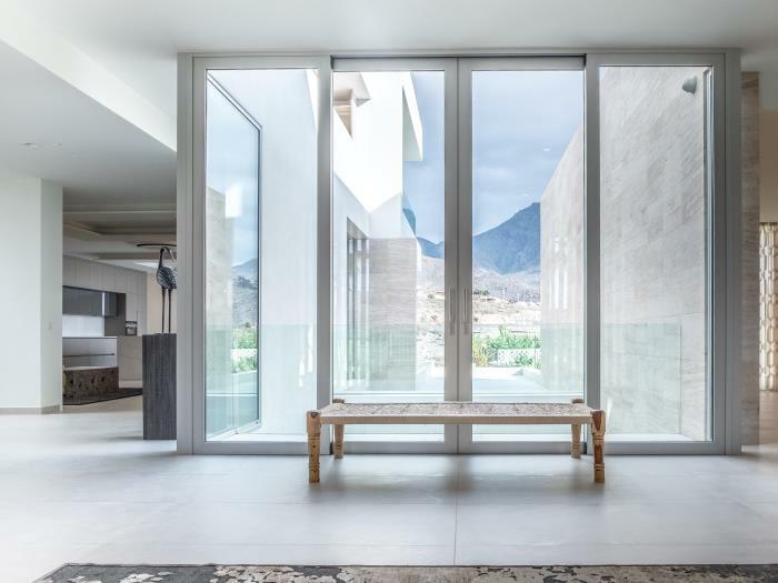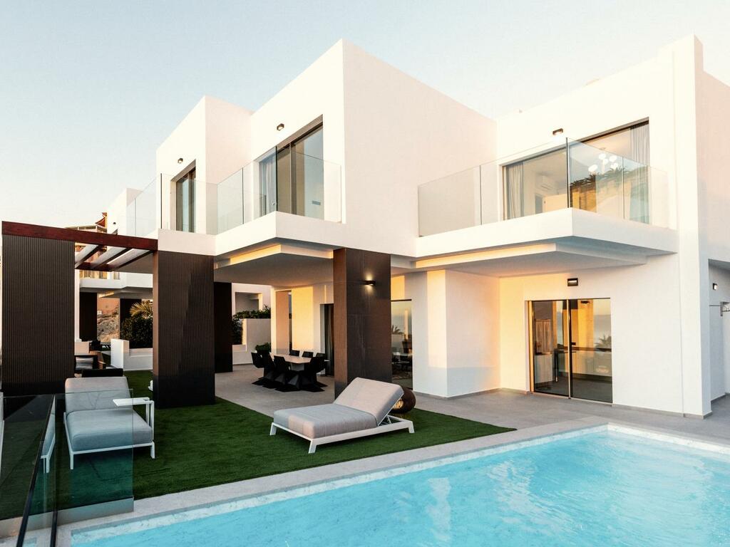 Lujoso chalet en Costa Adeje, al sur de Tenerife, con vistas panorámicas al mar y la montaña. Cuenta con dos piscinas infinity, zonas chill out, jacuzzi, cinco dormitorios en suite, cocina de alta gama y domótica. A pocos minutos de playas y servicios, ofrece máxima privacidad y comodidad en un ambiente moderno y elegante.