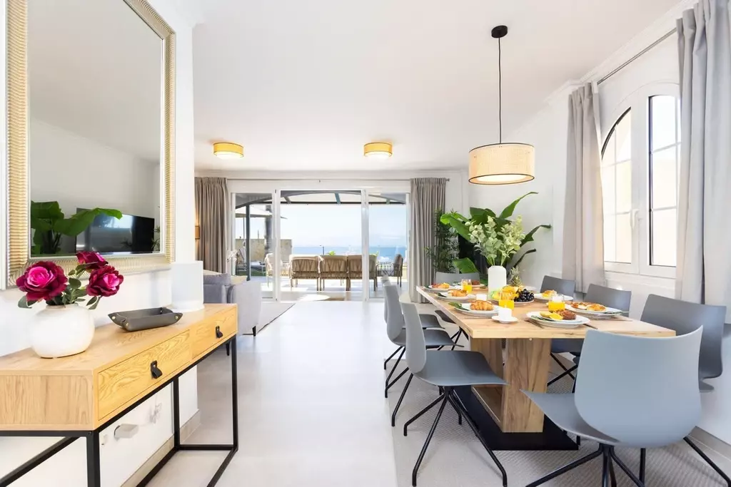 Entre su completo equipamiento destacan una piscina privada climatizada, un solárium con vistas al mar, aire acondicionado, y una barbacoa ideal para compartir momentos inolvidables al aire libre. Además, dispone de un elegante jardín, comedor exterior, tumbonas y mobiliario de terraza para disfrutar del fantástico clima de Tenerife.