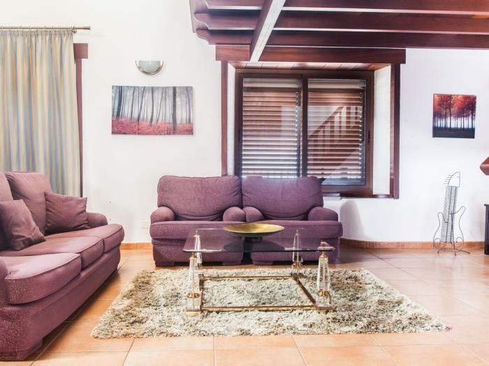 Villa encantadora ubicada en Armeñime, Adeje, ideal para grupos de hasta 10 personas. Esta propiedad combina detalles rústicos y modernos, ofreciendo un espacio único para relajarse. La villa cuenta con 5 habitaciones y 4 baños, y destaca por su piscina privada rodeada de palmeras, césped, hamacas y un área de cocina exterior para disfrutar de comidas al aire libre. Además, ofrece un salón amplio, una cocina totalmente equipada y un área de juegos con petanca. La villa está equipada con Wi-Fi gratuito, TV satélite y un sistema de alarma, asegurando comodidad y seguridad durante toda la estancia. Un lugar perfecto para disfrutar de unas vacaciones relajantes en Tenerife.